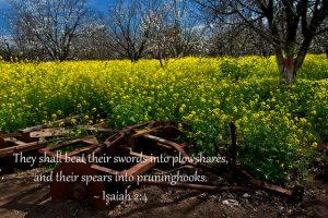 Isaiah 2:4 is familiar to many people (believer and unbeliever alike): “He will judge between the nations and will settle disputes for many peoples. They will beat their swords into ploughshares and their spears into pruning hooks. Nation will not take up sword against nation, nor will they train for war any more.” This is a popular verse because Isaiah presents a vision of universal peace. Wouldn’t it be wonderful if our society, our world was like that? Of course it would! But Isaiah also tells us in 2:3 that this vision of universal peace will only become a reality when all the nations (including our own, of course) are willing to submit to God and walk in his paths: “many peoples will come and say, “Come let us go up to the mountain of the Lord, to the house of the God of Jacob. He will teach us his ways, so that we may walk in his paths.” The law will go out from Zion, the word of the Lord from Jerusalem.”